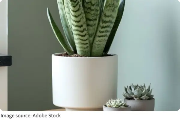 2. Snake Plant: Easy to care for and resilient, snake plants purify air while adding serene greenery. Its upright leaves create a sense of order and stability.